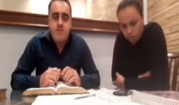 “Haz las cosas bien, imbécil”, le gritó el hombre su esposa. A los pocos segundos, con las manos sobre la Biblia, dijo a sus seguidores: “acepten la paz del Señor”.
