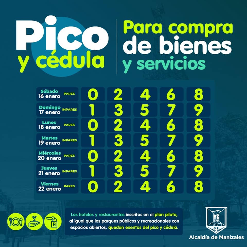 La Alcaldía de Manizales también publicó cómo funcionará el pico y cédula en el mismo periodo: