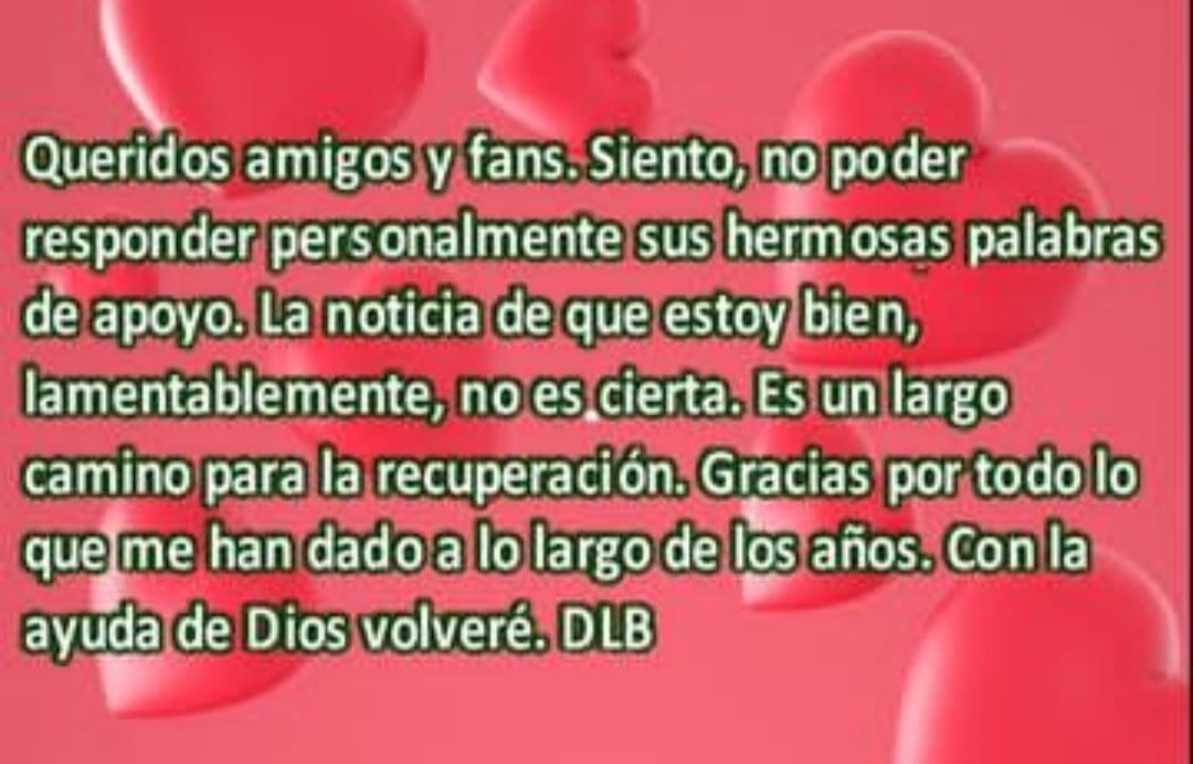 A pesar de que parece consiente, expresó “Queridos amigos y fans. Siento no poder responder sus hermosas palabras de apoyo. La noticia de que estoy bien, lamentablemente, no es cierta”. Esto fue lo que escribió esta mañana en la red social.