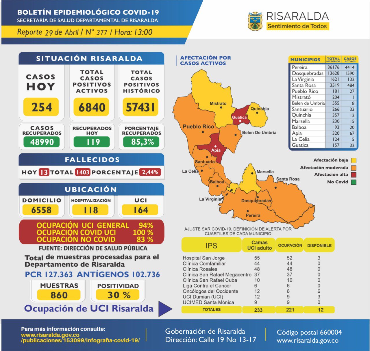 Tras realizado el Puesto de Mando Unificado, la medida se tomó según el gobernador de Risaralda, Víctor Manuel Tamayo Vargas, quien informó a través de su cuenta de Twitter, que Risaralda alcanzó el 100% de ocupación en todas sus Unidades de Cuidados Intensivos (UCI), debido al alto número de pacientes contagiados de covid-19 que han ingresado en los centros hospitalarios, así el departamento ajusta 14 días en alerta roja hospitalaria.